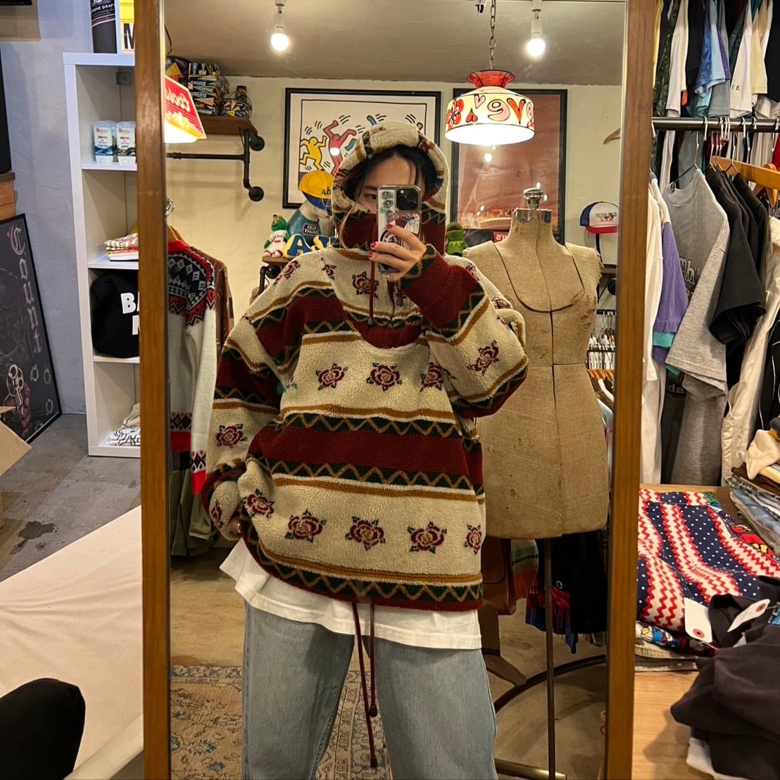ローズ柄のフリースプルオーバーになります。