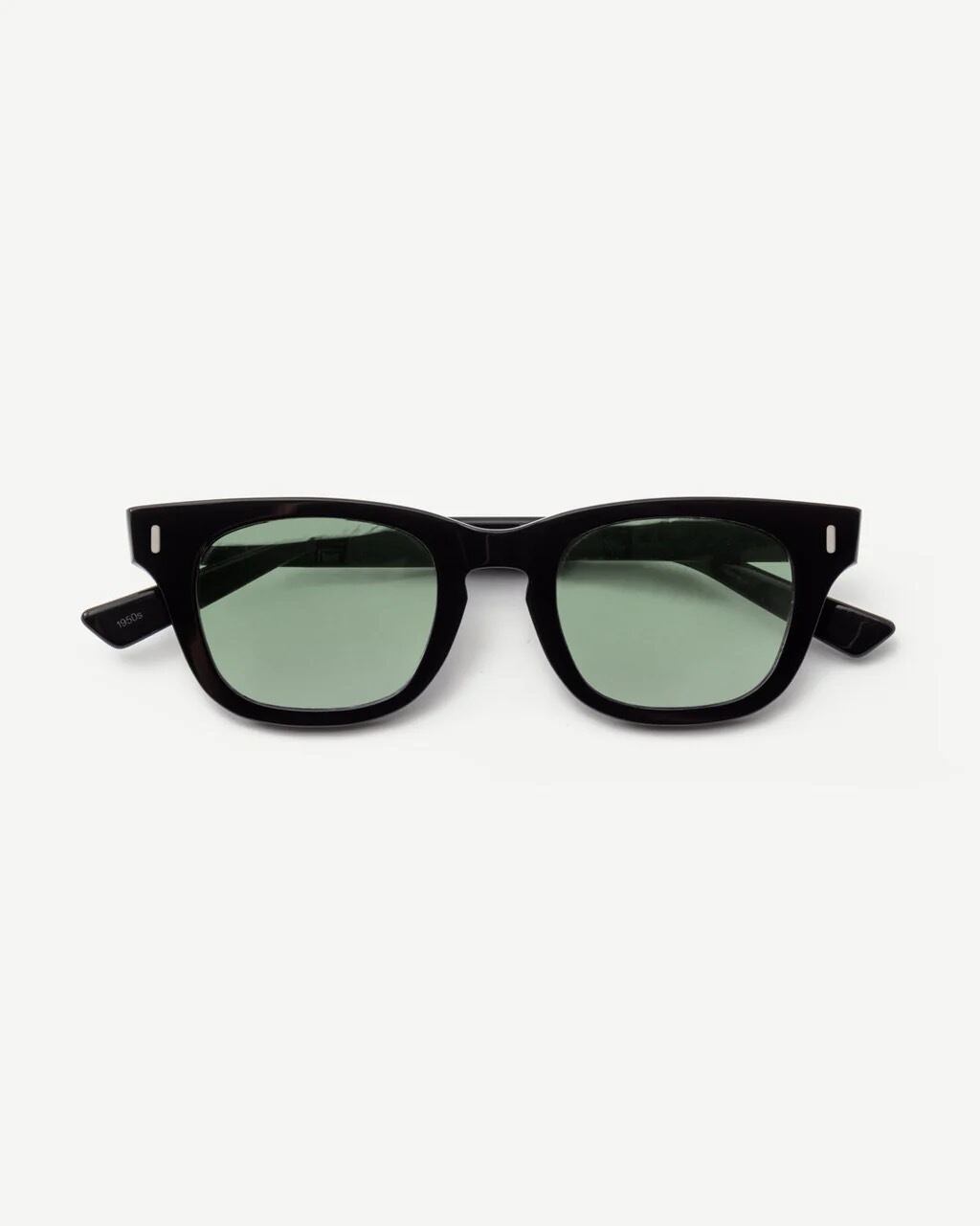 工場労働者の安全眼鏡とビートニクカルチャーからインスパイアされた、すっきりとしたDフレームシルエットの1950年代スタイル。