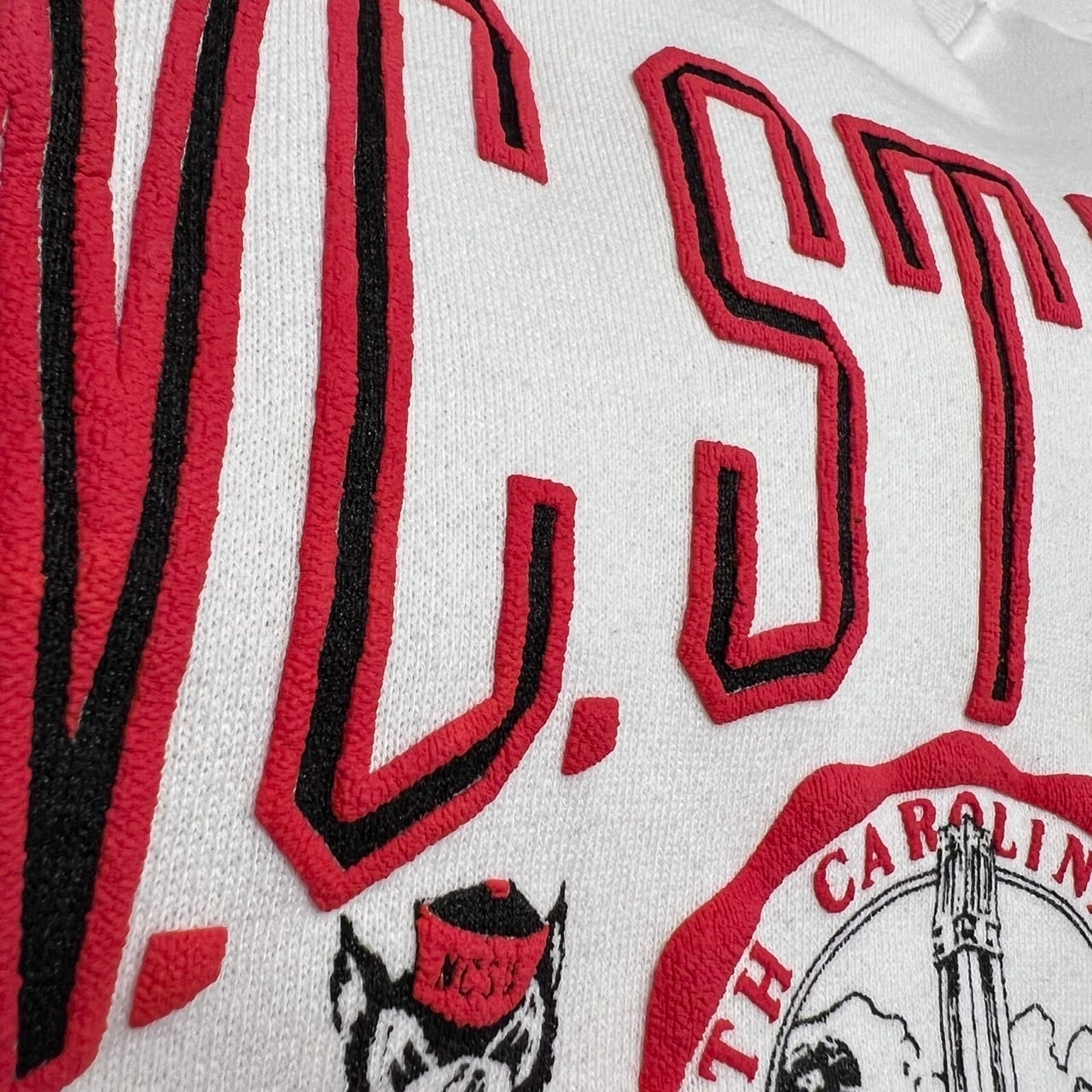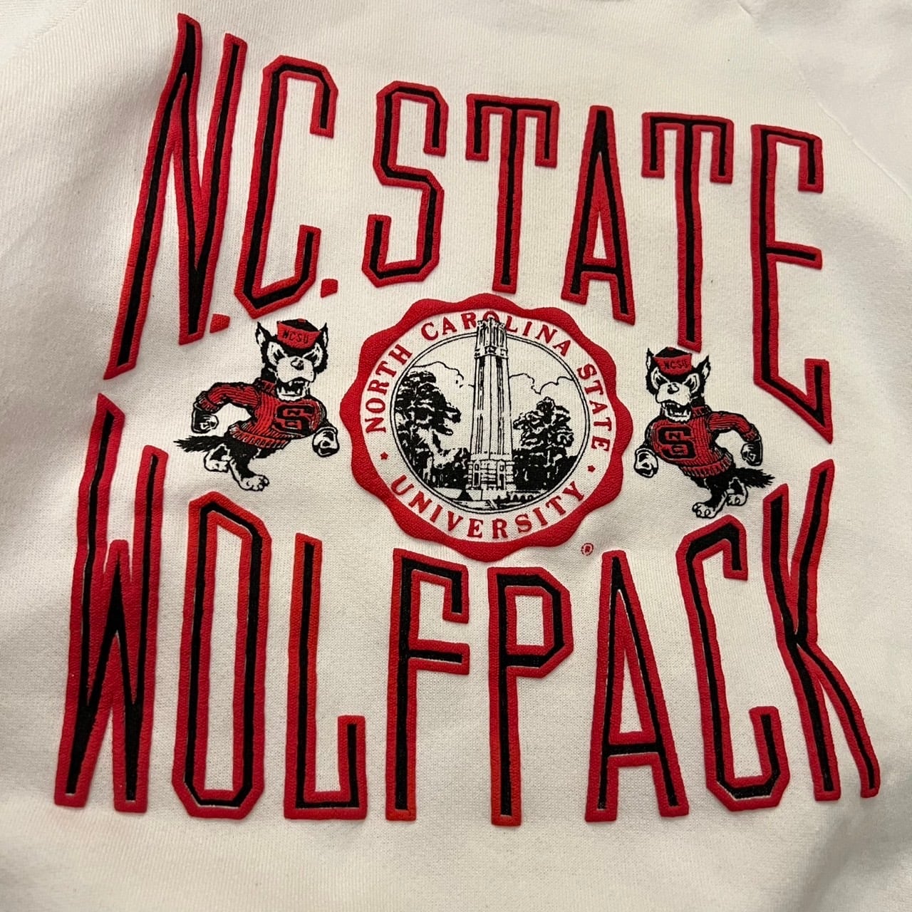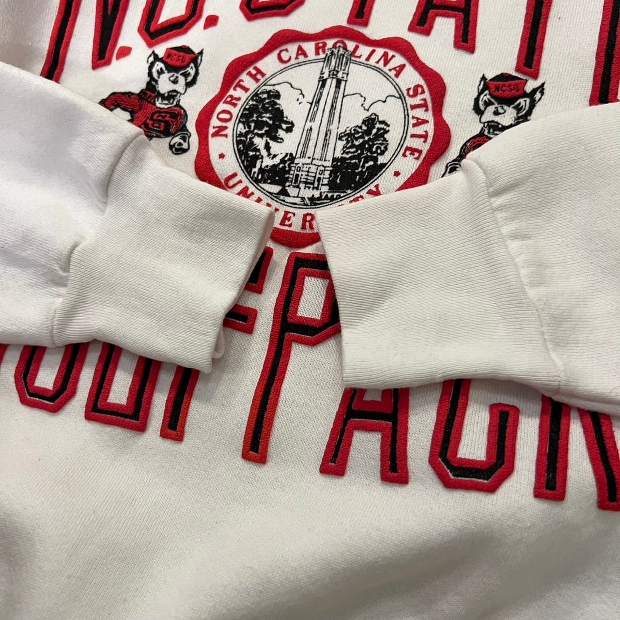 90's ノースカロライナ州立大のフットボールチームのスウェットになります。