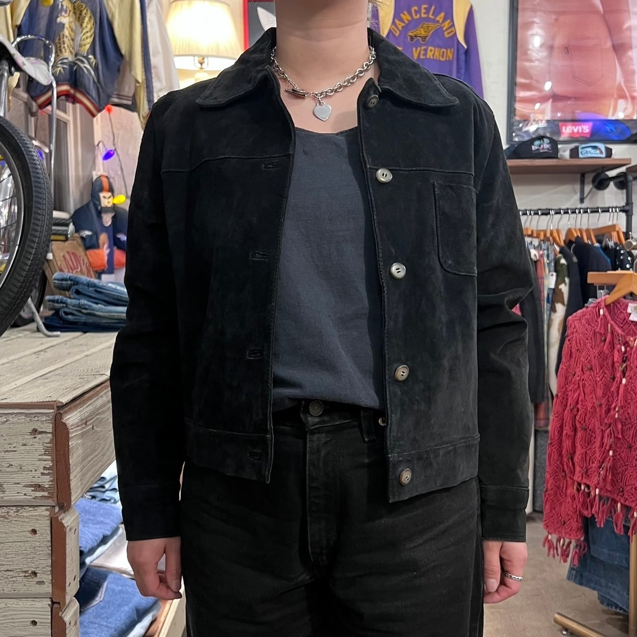 ブラックのスウェードジャケットになります。