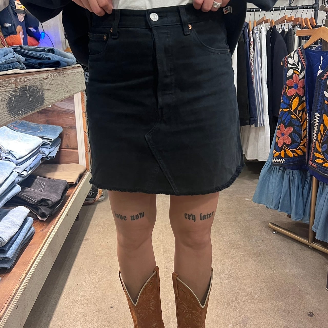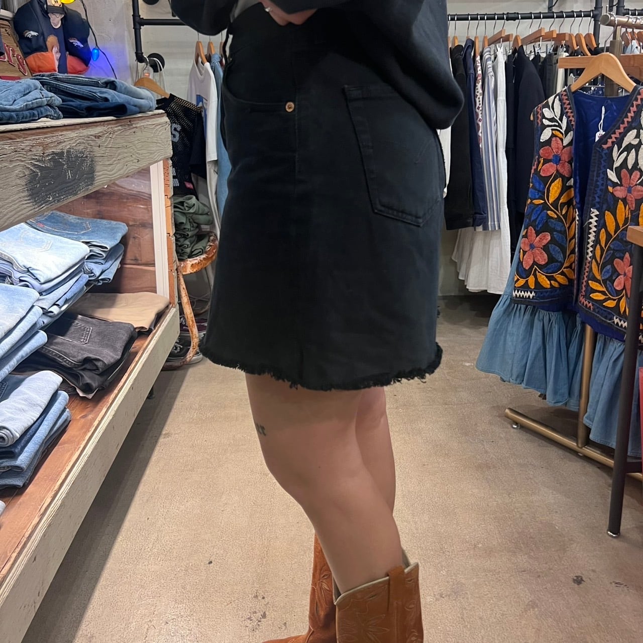 リーバイス、ブラックデニムのリメイクスカートになります。
