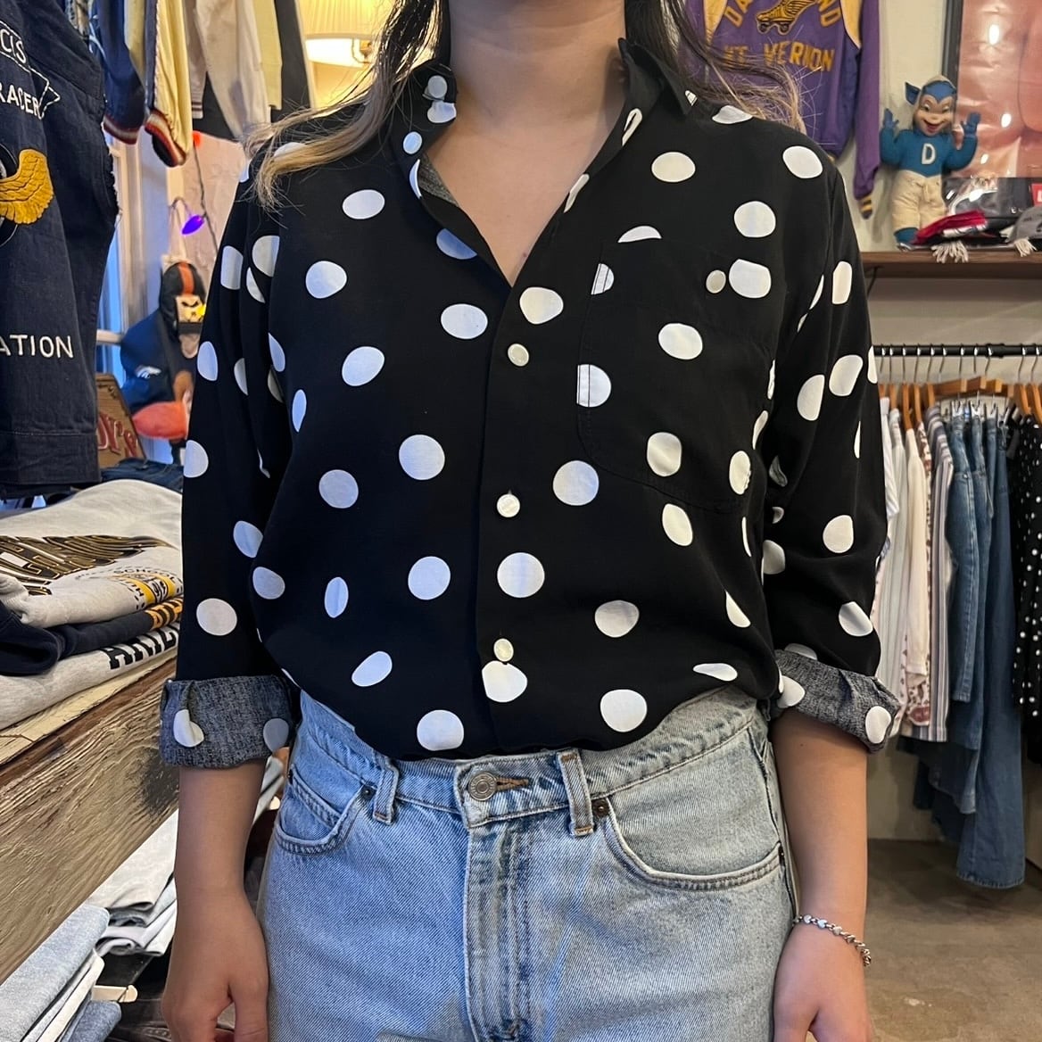Lizのドット柄シャツになります。