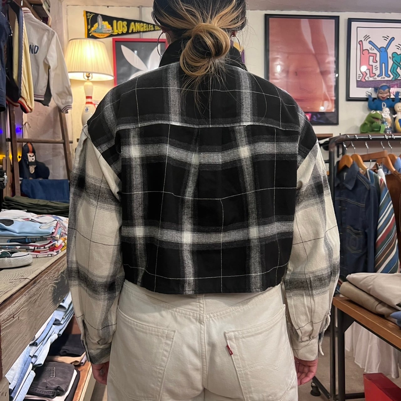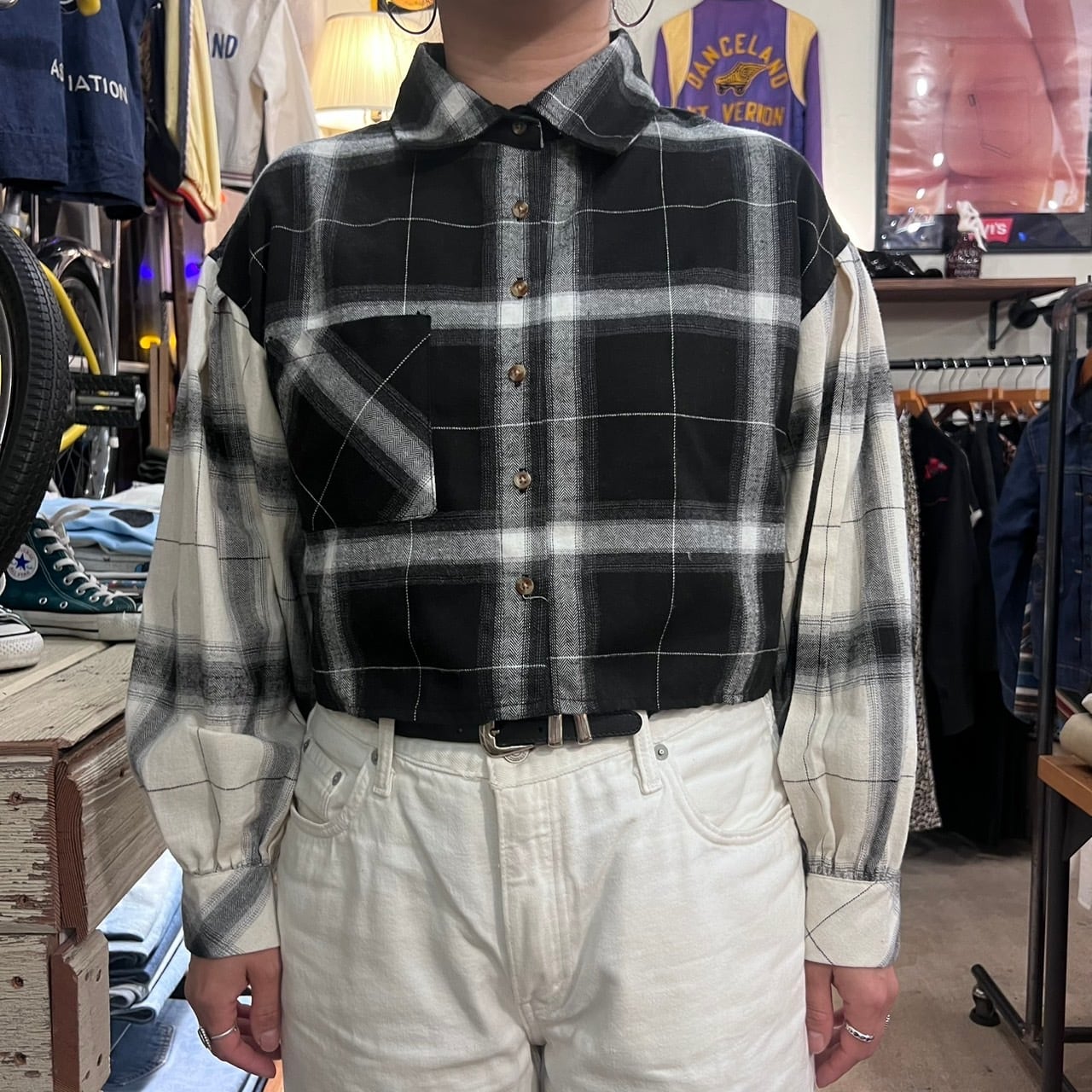 チェック柄クロップド丈シャツになります。